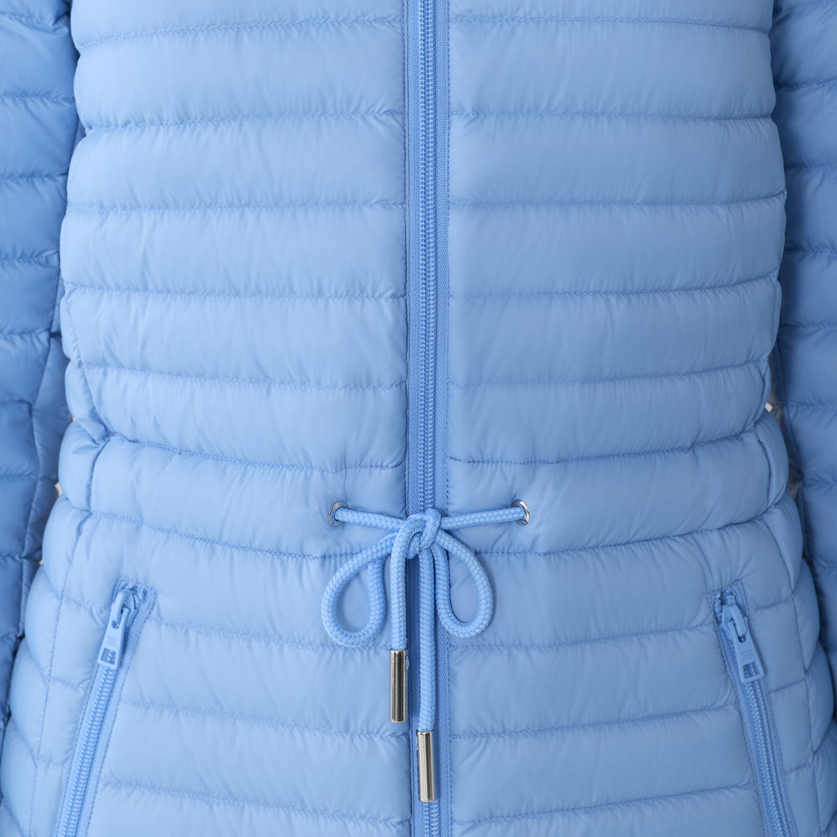 Machine wash the item inside out while using cold water and a mild detergent. Avoid using bleach and soaking or wringing the item. To preserve and optimize the water repellent performance, we suggest using a reproofing spray. You may tumble dry on a low setting while using tennis balls to fluff up the coat until fully dried and if necessary, you may steam, but we recommend avoiding ironing the item.