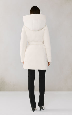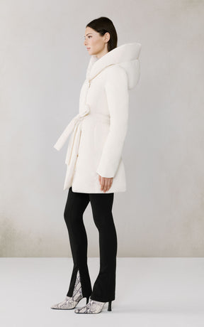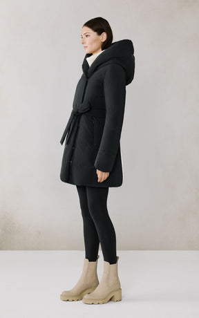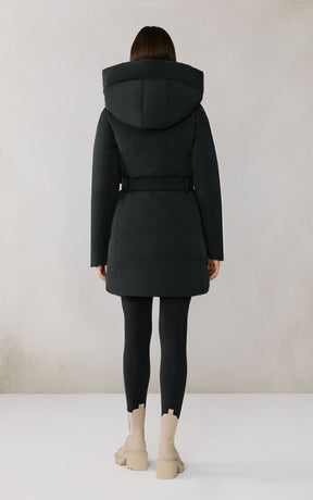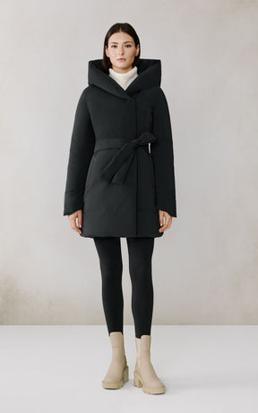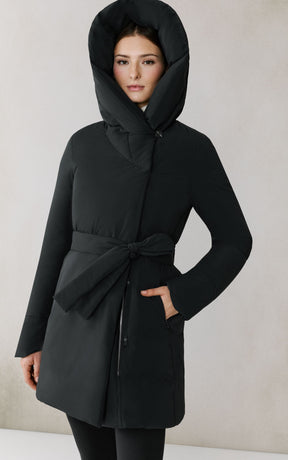 ADELAIDE by SOIA & KYO is built for warmth without compromise. Made from a water-resistant shell and filled with 700+ fill power RDS-certified down, it’s rated for -25 °C and designed to keep you cozy in cold weather. Features like the oversized hood, storm cuffs, and detachable puffer belt add comfort and structure, while the asymmetric closure lends a modern edge.