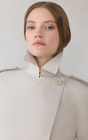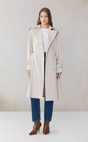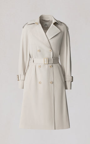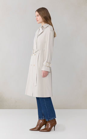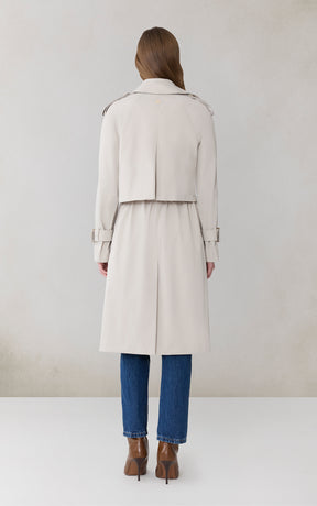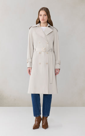 The BECKY-L by SOIA & KYO is a longer take on the classic trench. With a double-breasted front, multi-stitched belt, and back vent, it delivers both shape and ease. Made with a water-resistant shell fabric, it’s a weather-ready piece with elevated structure.