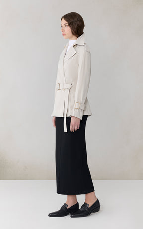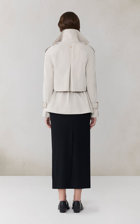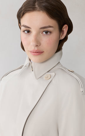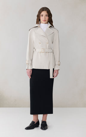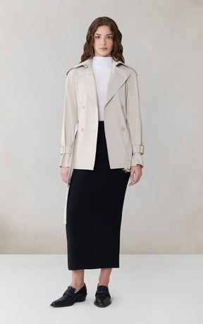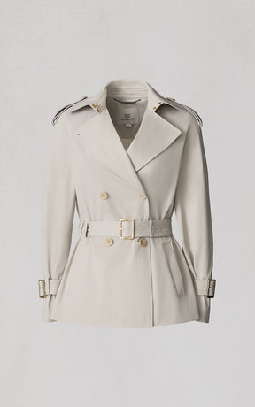The BECKY by SOIA & KYO reimagines the classic trench with a modern twist. Featuring a structured Napoleon collar and a double-breasted front, this coat offers both form and function. The multi-stitched belt cinches the waist, while raglan sleeves and a back storm flap ensure comfort and mobility. Crafted from water-resistant fabric, it's a timeless piece designed for contemporary living.
