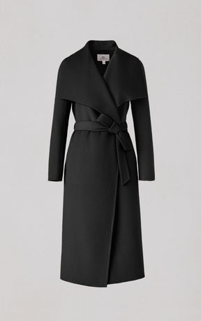 The BRITTA-U by SOIA & KYO is a fluid wrap coat with refined details. Side slits and a cascade collar soften the longline silhouette, while the belt cinches the waist. Made from double-face wool and finished with hand-sewn seams for a clean look.