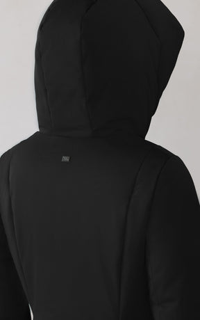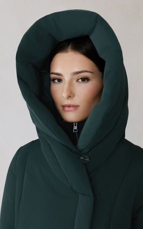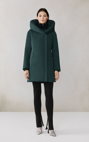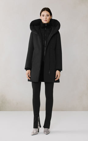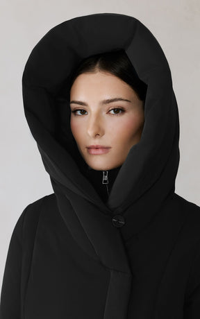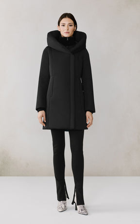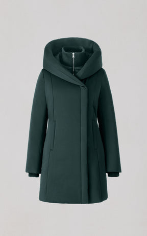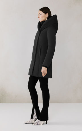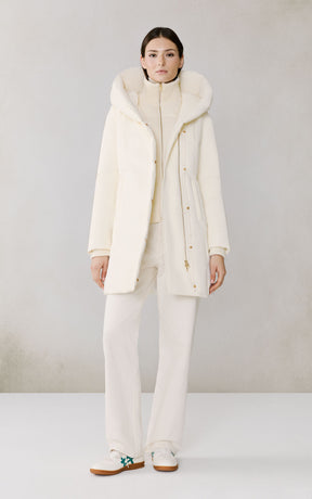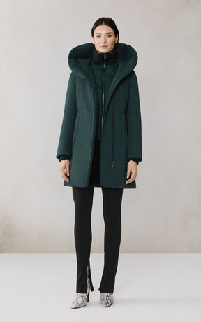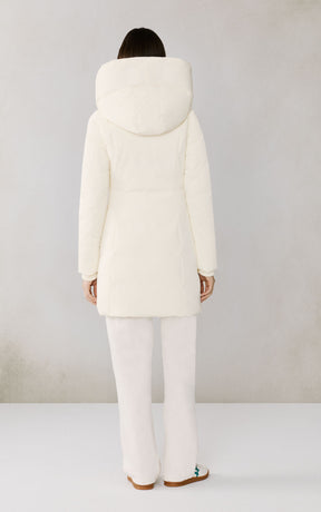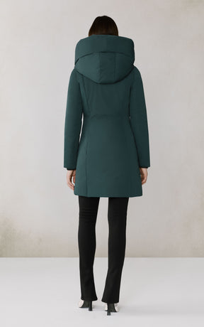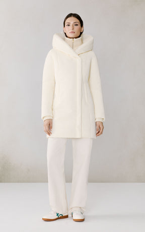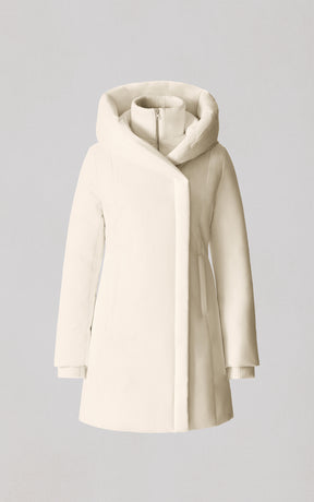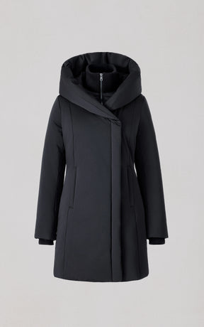 The CAMELIA-U by SOIA & KYO pairs winter performance with signature design. Engineered for -30 °C, it’s filled with RDS-certified down and includes a quilted puffer bib for extra protection. A hidden zip closure, rib-knit storm cuffs, and fleece-lined pockets deliver comfort, while the cotton-blend shell adds subtle texture to its sleek silhouette.