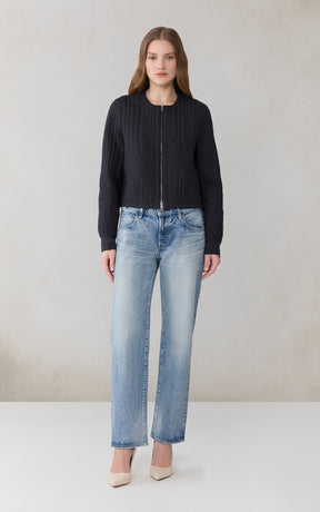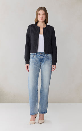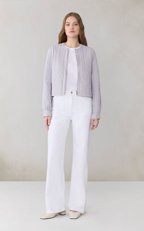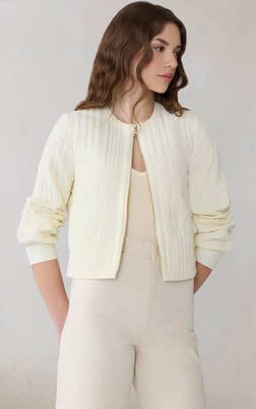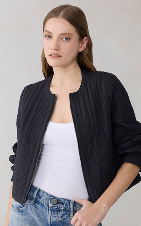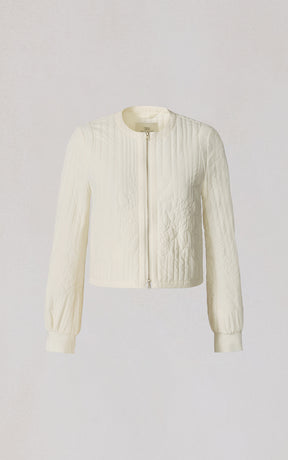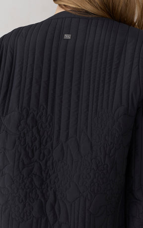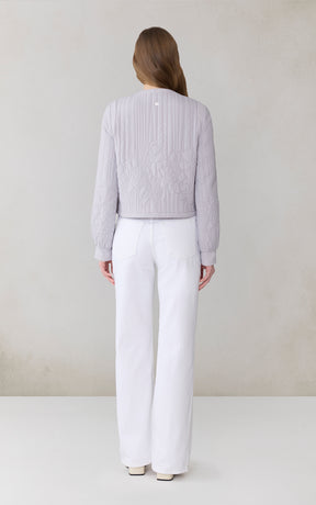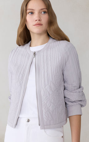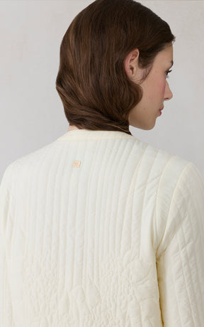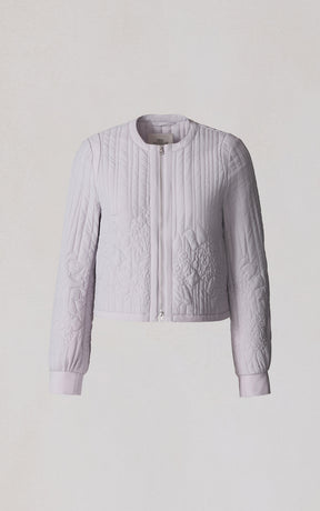 REITA by SOIA is a quilted jacket that merges softness and structure. Designed with floral quilting and a minimalist collarless cut, it offers just the right amount of warmth and shape for cool-weather layering.